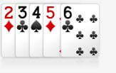 Kombinasi dari kartu ini terdiri dari lima kartu yang berurutan. contohnya 2,3,4,5,6 atau 10, Jack, Queen, King, As atau bisa juga 5,6,7,8,9